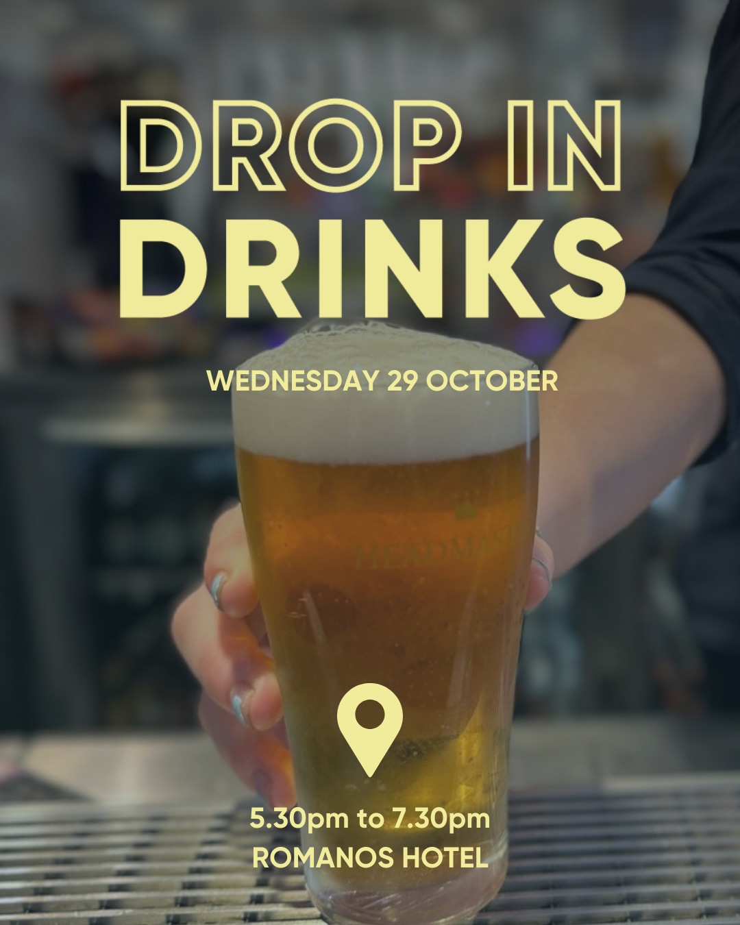 October Drop-in Drinks at Romanos Hotel
